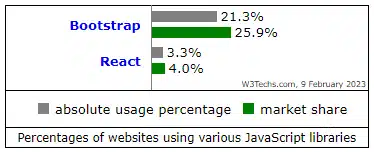 If I talk about Bootstrap vs React there is a huge difference between the market share of Bootstrap and React. Have a look at the image below.