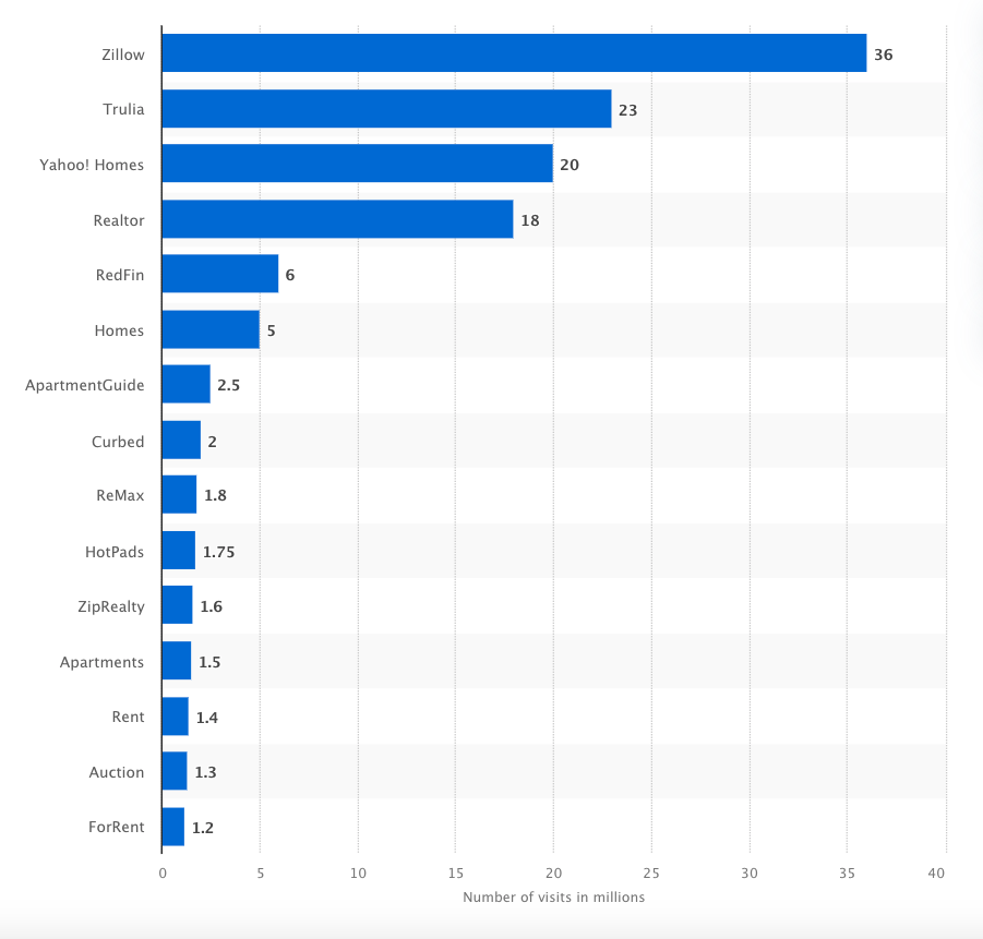 Zillow is a platform for buying and selling homes. You can use its website and app as well. It is the most visited website. Likewise, it has 234 million monthly unique users and this number is increasing continuously.