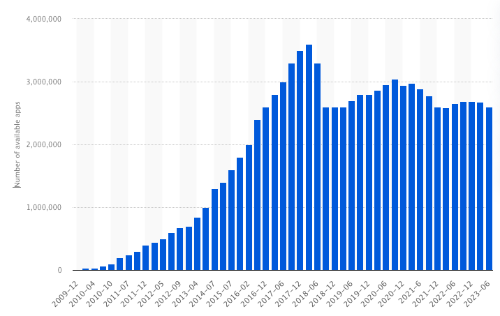 As the number of smartphone users is increasing, play store users are also increasing. Play store is the biggest and the most popular source people use to download apps. Have a look at the image below. It presents the number of apps available in the play store in 2022.